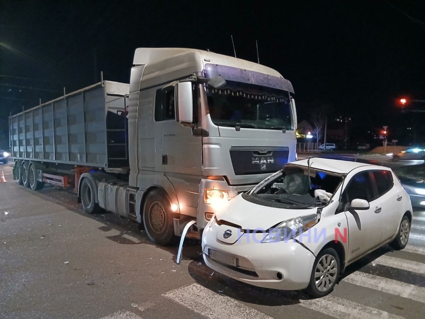 «Ніссан» потрапив під сідельний тягач у Миколаєві: водія та пасажира госпіталізовано