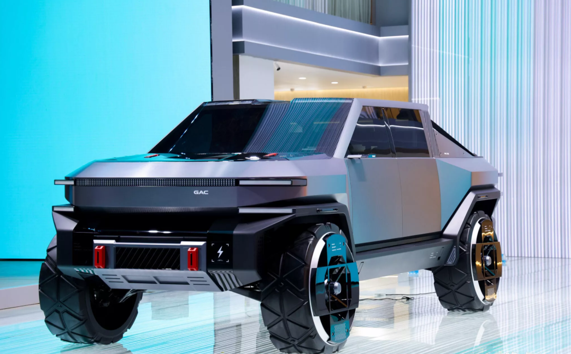 Китайська компанія GAC на Шанхайському автосалоні представила двійника Tesla Cybertruck на стероїдах. Китайський електричний пікап отримав промовисту