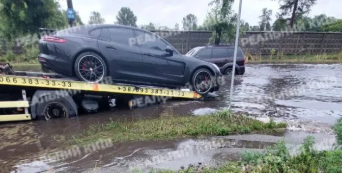 У Києві під час сильної зливи затонув люксовий спорткар Porsche Panamera. Інцидент стався 30 липня на вулиці Стеценка. Водій елітного автомобіля