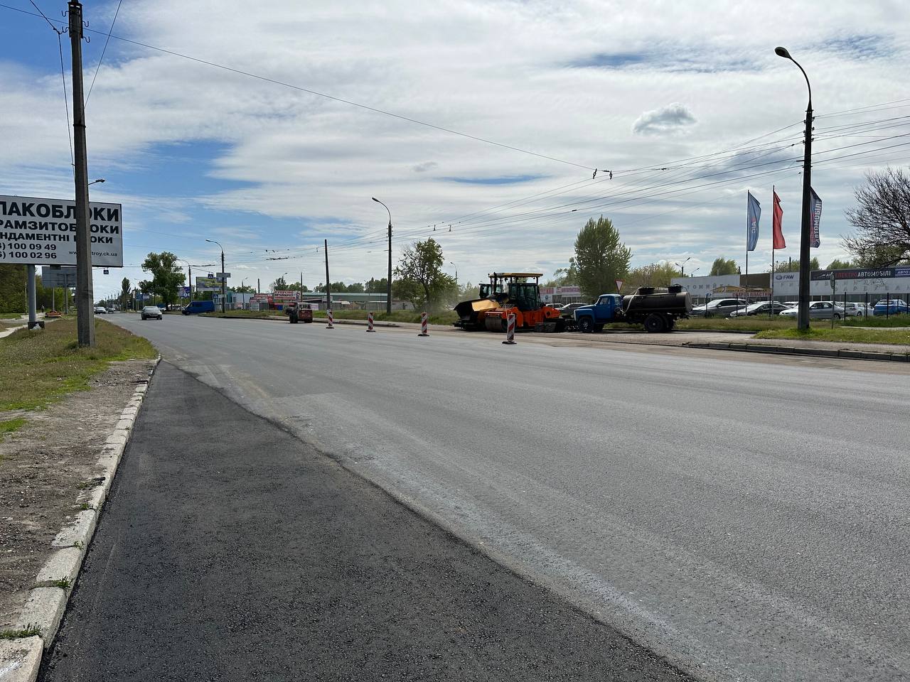 Одночасно на кількох вулицях Черкас триває поточний ремонт дорожнього покриття. Зношений асфальт наразі оновили на вулиці Чигиринській, нині ж фахівці працюють уздовж провулку Семена Палія (колишня – Зелінського) та на відрізку вулиці Олени Теліги (від Віталія Вергая до проспекту Перемоги).