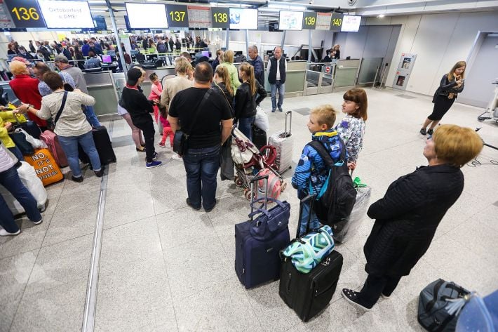 Українцям доводиться стояти в чергах аеропорту «Шереметьєво» від 15 до 27 годинПро це повідомила Східна правозахисна група. У російському аеропорту