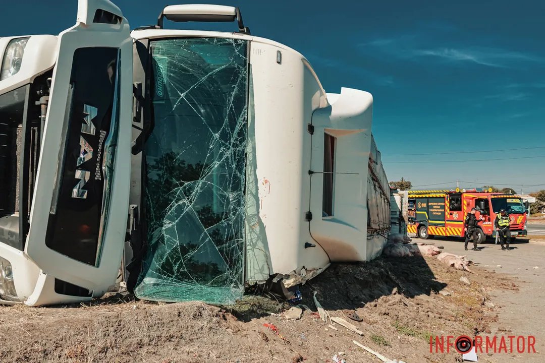 В Днепре перевернулся грузовик со свиньями: детали ДТП