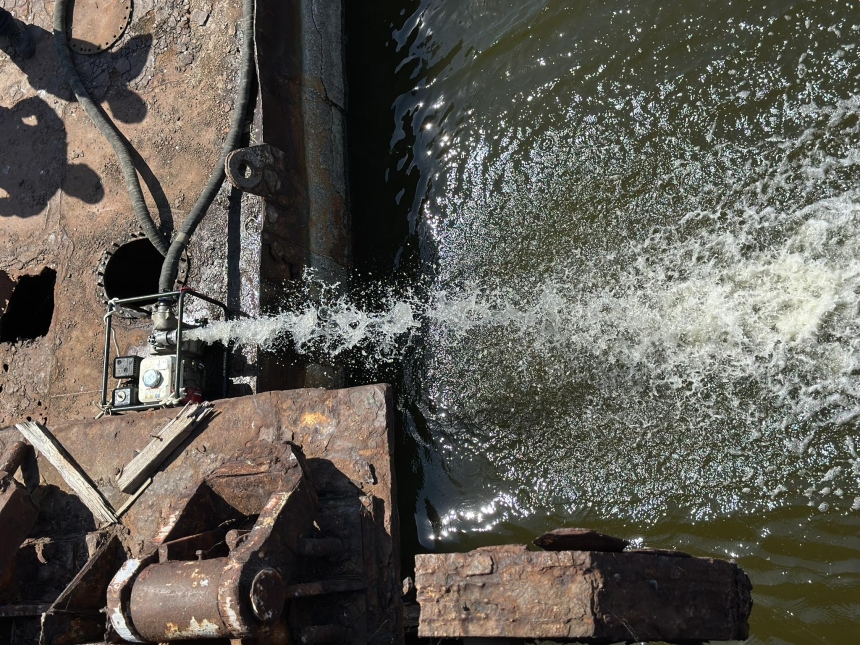 У Миколаєві відкачали воду із понтонного мосту під час планового обслуговування. Про це повідомляє прес-служба Миколаївської міськради. Було