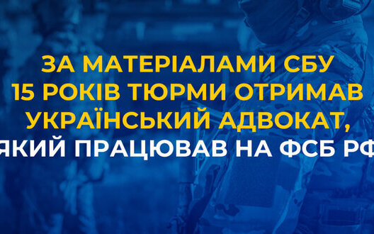 За матеріалами Служби безпеки України, до 15 років позбавлення волі з конфіскацією майна засуджено адвоката з Київської області, який працював на
