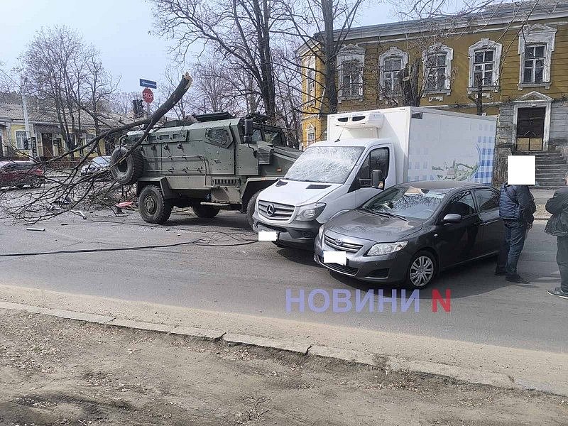 У центрі Миколаєва броньовик зніс світлофор, ліхтарний стовп і протаранив два автомобілі