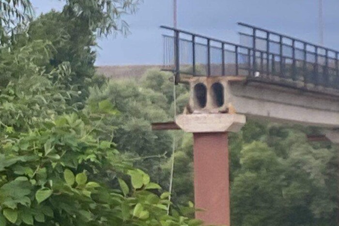 У Івано-Франківську через різке підняття рівня води обвалилася частина пішохідного мосту на Набережній. Про це повідомив мер міста Руслан Марцінків.