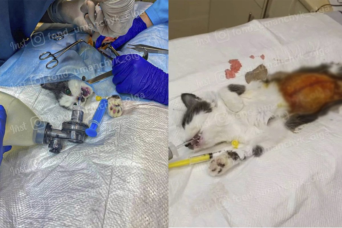 До рук ветеринарів потрапило маленьке кошеня. Пухнастика хтось побив та залишив помирати на морозі. У котика дуже важкі травми — відкритий перелам
