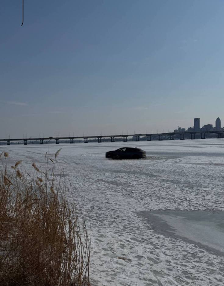 У Дніпрі автівка провалилася колесами під кригу посеред замерзлої річки. Інцидент стався біля узбережжя пляжу парку "Сагайдак". Як повідомляють