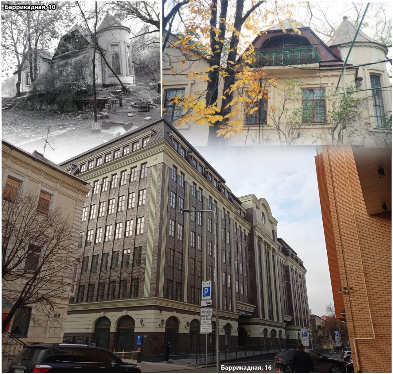На місці бізнес-центру “Кудашевський” на вулиці Барикадній, 16 раніше розташовувалися старі будинки, які перед зведення нової будівлі знесли. Про це