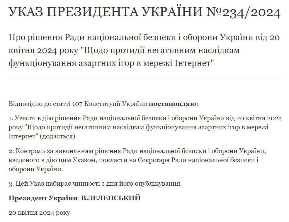 У суботу, 20 квітня, президент Володимир Зеленський ввів у дію рішення Ради національної безпеки і оборони України (РНБО) про обмеження азартних ігор