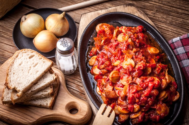 Якщо ви куштували лечо із сосисками, то ця страва з домашньою ковбасою та яйцями не стане для вас дивиною. Але повірте, вона настільки ситна та