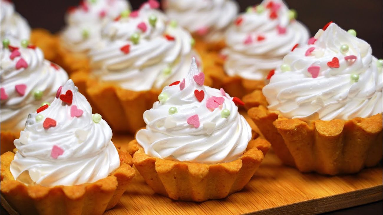 Рецепт пісочних кошиків з білковим кремом та солодкою начинкою