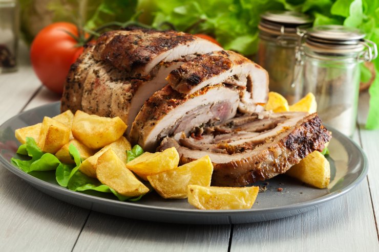 Рулет зі свинини із журавлиною і горіхами