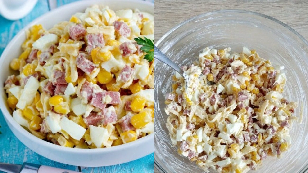 Рецепт салату з ковбасою, сиром і кукурудзою: на новорічний стіл