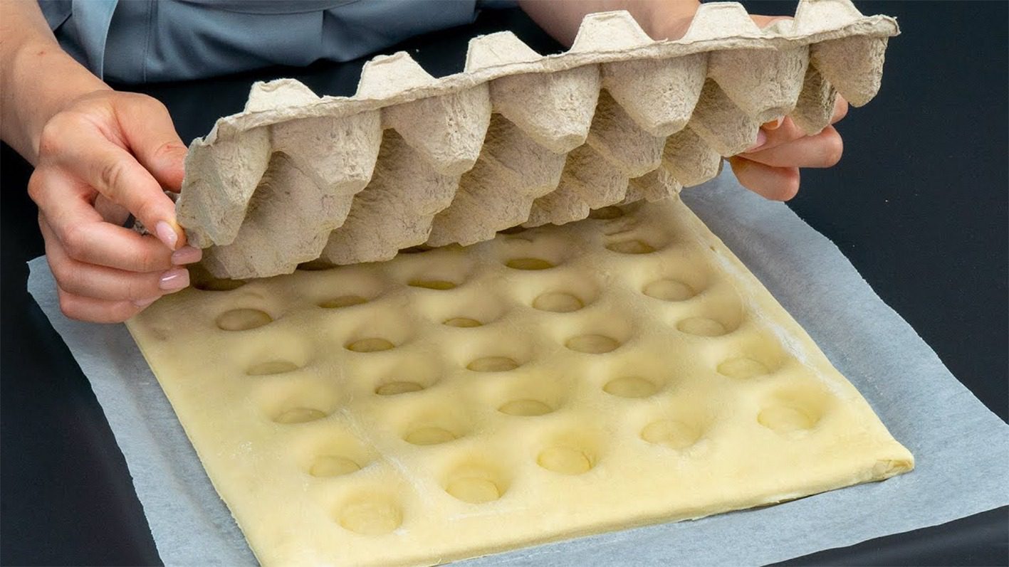 Рецепт оригінальної закуски з листкового тіста за допомогою яєчного лотка