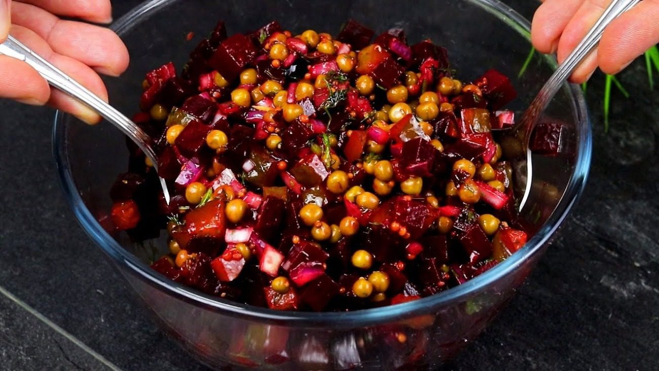 Швидкий рецепт салату з відвареного буряка, маринованих огірків і горошку
