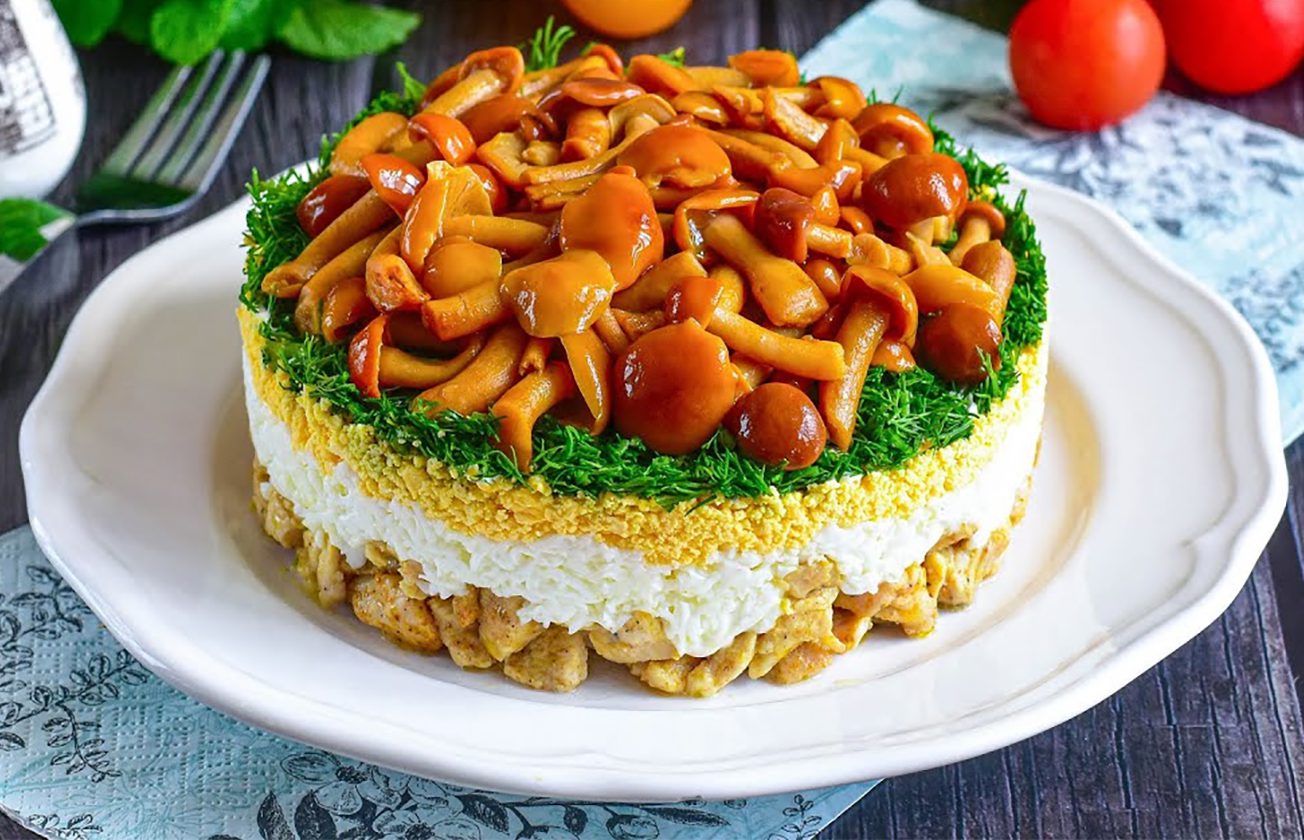 Рецепт салату з куркою та грибами на весняний святковий стіл