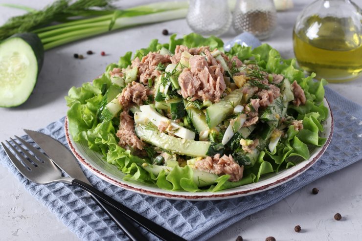 Польський салат з молодою капустою і консервованим тунцем