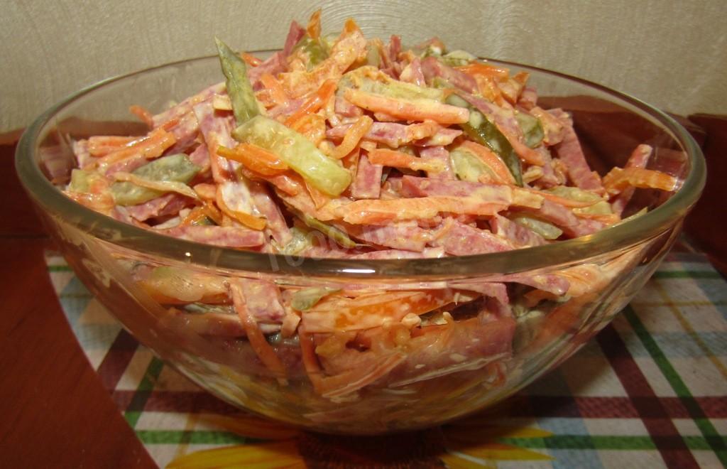 Дуже простий та смачний салат з копченою ковбасою