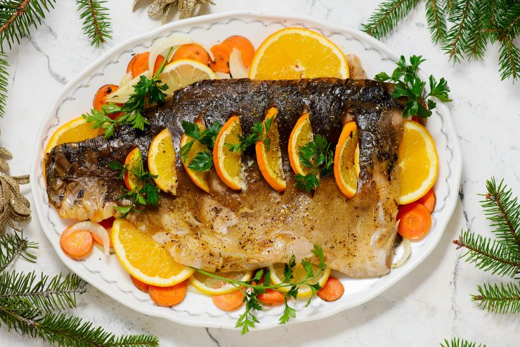 Запечений короп — святковий рецепт з апельсинами та овочами