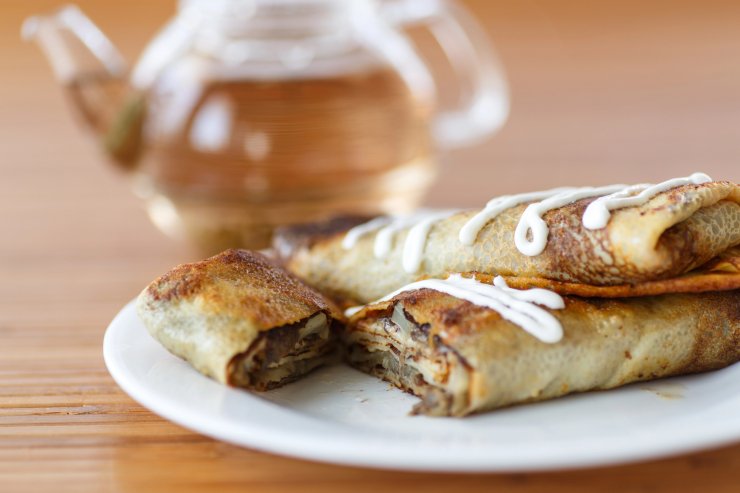 Гриби ідеально поєднуються з ніжністю варених яєць, створюючи оксамитову за текстурою начинку з насиченим смаком. Готуємо млинці на мінеральній воді,