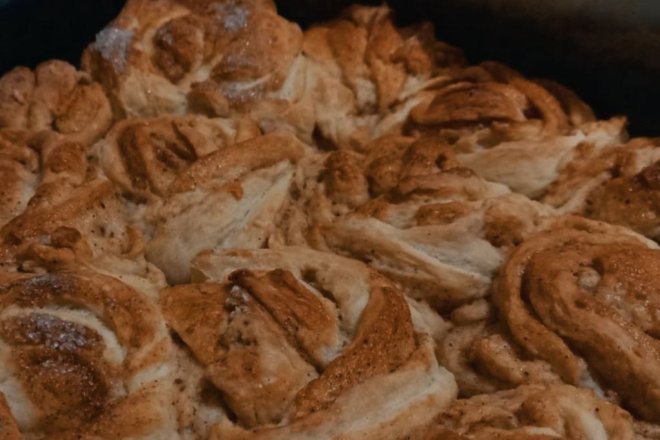 Трохи про рецепт булочок з корицею Авторка надихнулася шведськими булочками з корицею. Коли розкачаємо тісто, посипаємо його цукром, поєднаним з