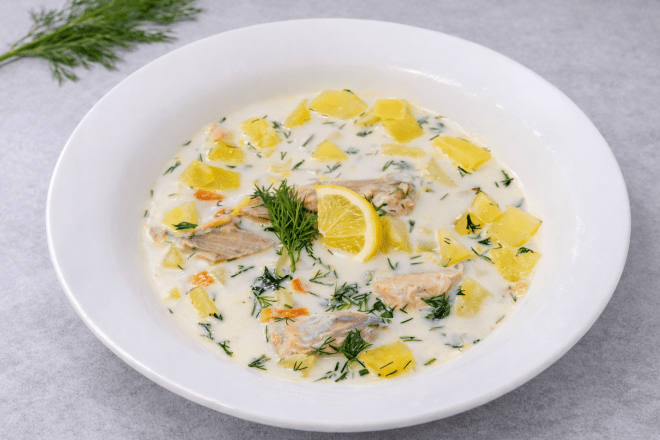 Фінський вершковий суп з лососем — легкий обід без засмажки