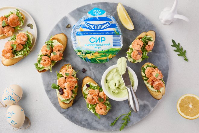 Брускети з креветками й кремом з авокадо і сиру — рецепт святкової закуски на Великдень