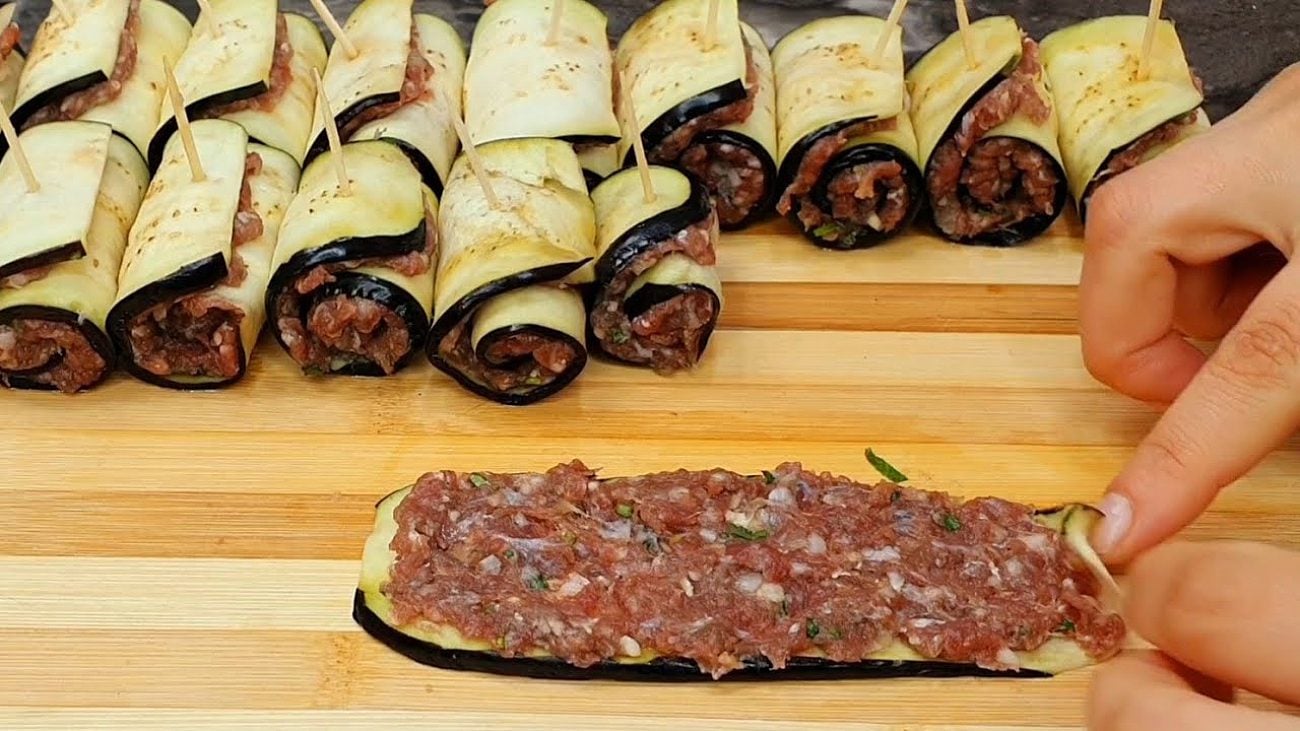 Рецепт рулетиків із баклажаном та фаршем у сметані
