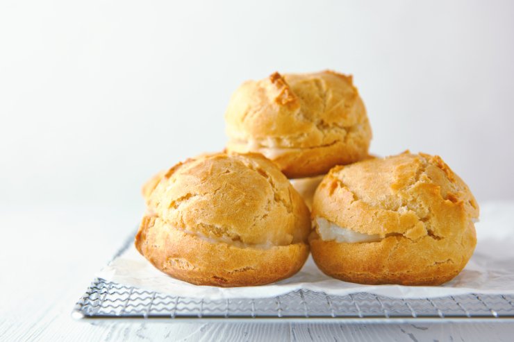 Профітролі з шинкою, сиром і редискою — це витончена закуска для фуршету. Повітряне заварне тісто і багата начинка з шинки, фети, редиски, зеленої