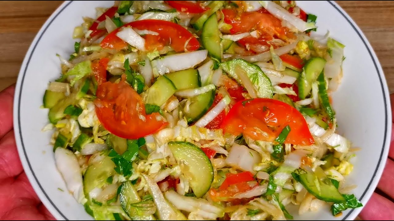 Салат з огірків, помідорів та пекінської капусти з олійною заправкою