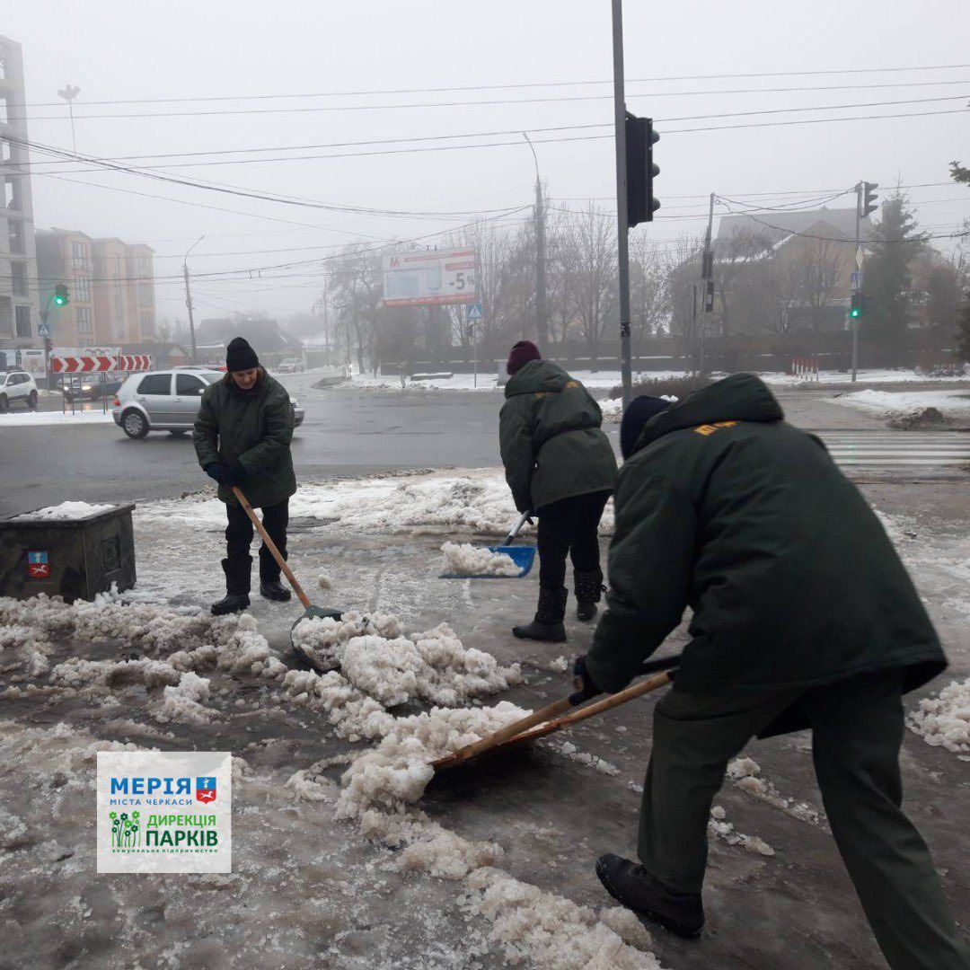 Сьогодні комунальники в повному складі спрямували зусилля на ліквідацію наслідків негоди та підготування територій до прогнозованих снігопадів.