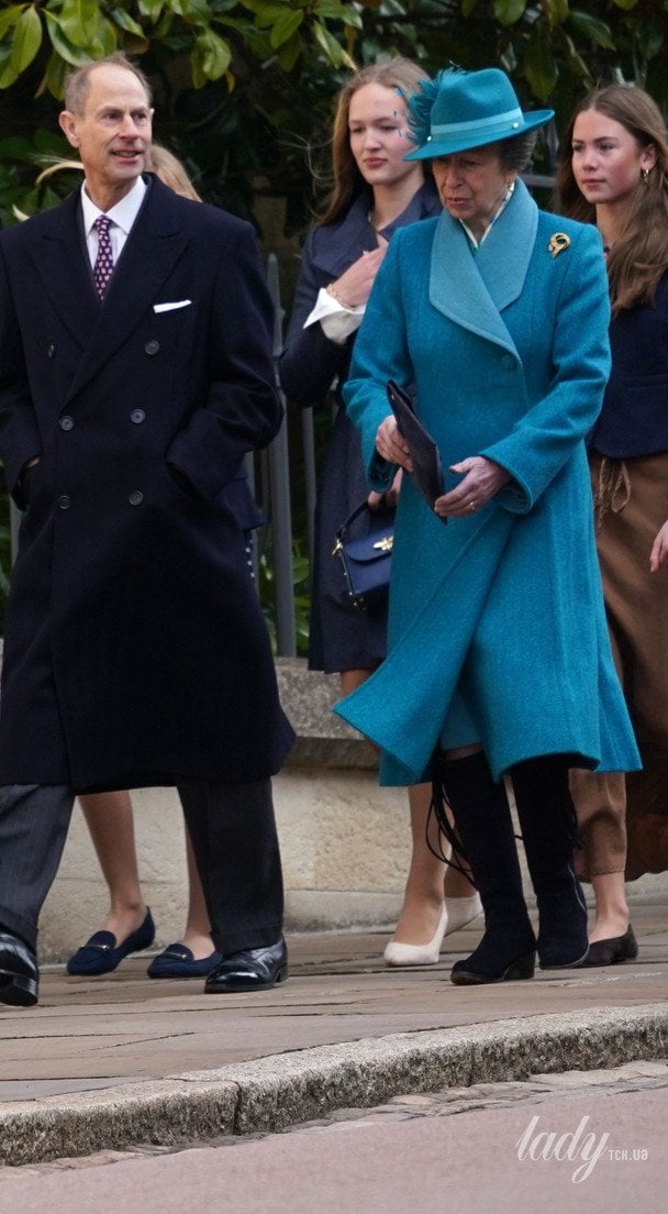 До каплиці Святого Георгія у Віндзорі, де сім’я зазвичай збирається на Великдень, сестра короля Чарльза приїхала у добре знайомому блакитному пальті,