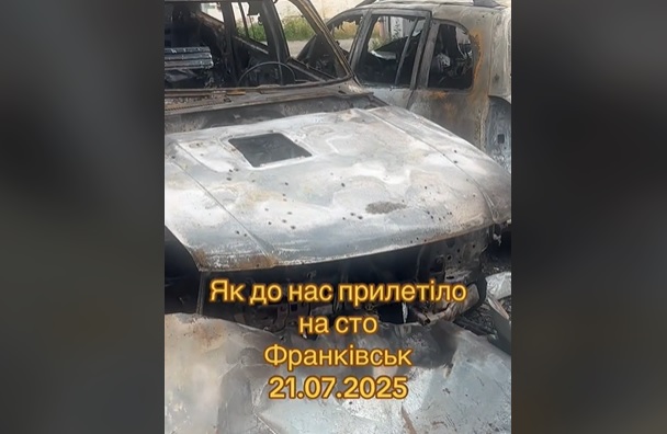 Під час російської атаки на Івано-Франківськ уламок ракети влучив у СТО, спричинивши значні руйнування та знищивши п’ять автомобілів.Повідомляється,