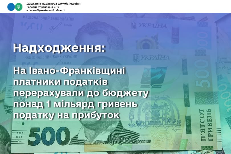 Понад 1 мільярд гривень податку на прибуток надійшло до бюджету з Прикарпаття
