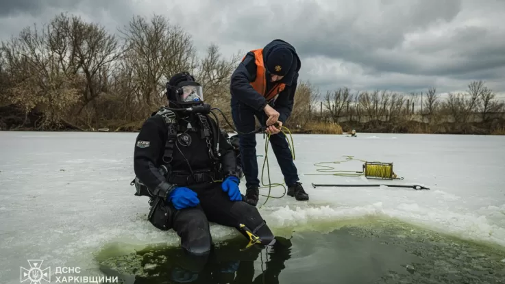 4 березня в Основ’янському районі Харкова водолази-сапери ДСНС обстежили акваторію водойми після повідомлення про влучання уламків ракети реактивної