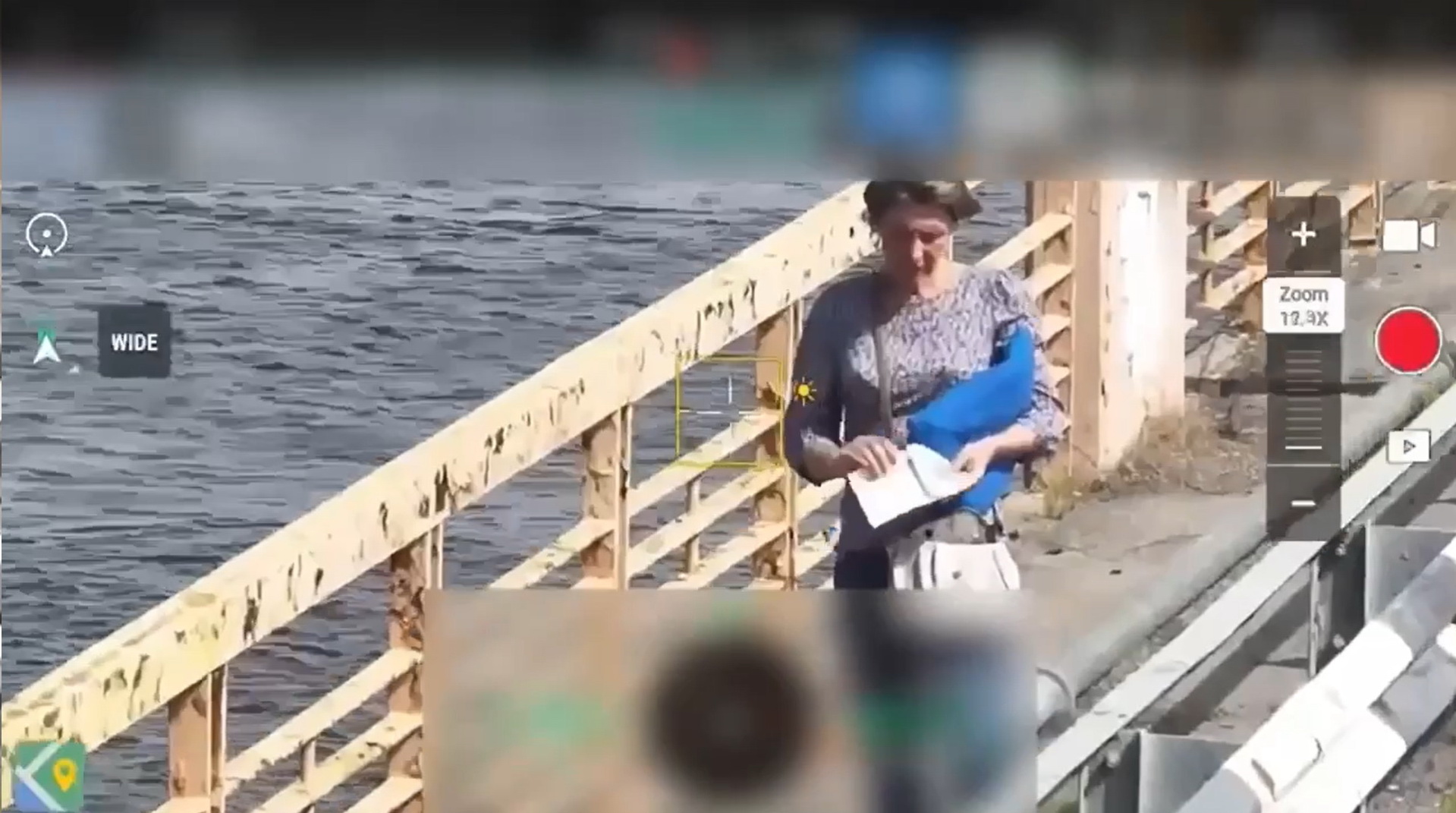 Українка прийшла на уцілілі уламки Антонівського мосту з боку окупованого міста Олешки. Жінку примітив оператор українського дрону, якому вона