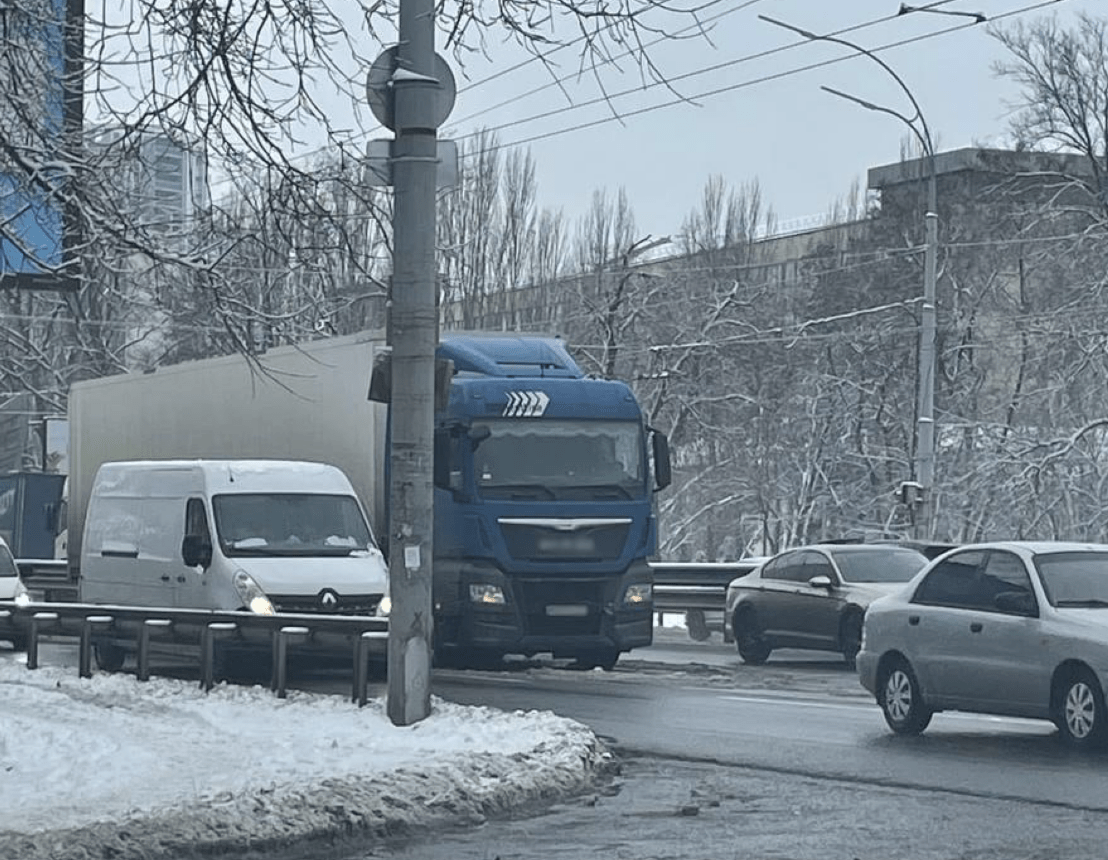 На в’їзді в Київ вантажівка перегородила рух: Одеська площа зупинилася