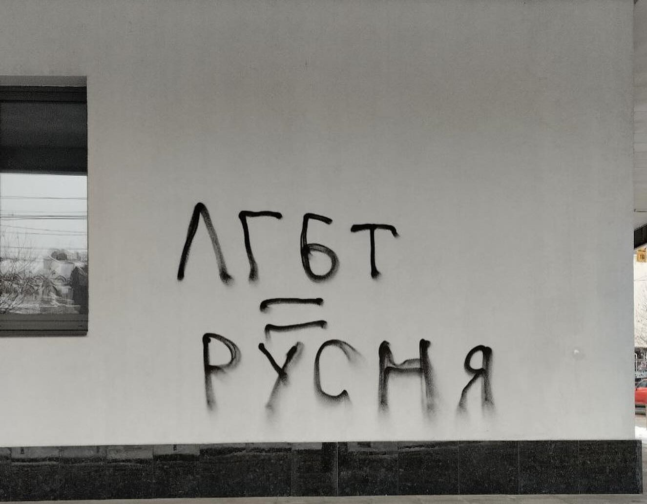 Будівлю столичного кінотеатру «Жовтень» невідомі 11 лютого обмалювали фарбою, написавши гомофобні вислови, а також пофарбували сітілайти з афішею про