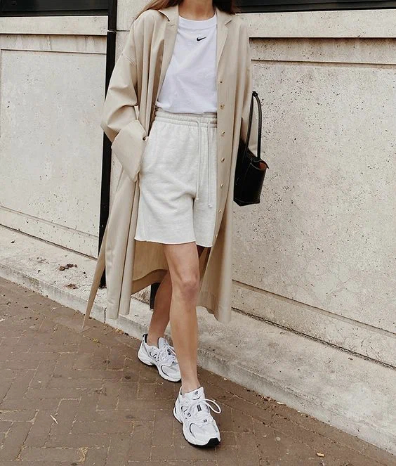 Кежуал образи зможуть виглядати максимально незвичайно, як цього разу: трикотажні шорти бермуди + базова футболка + тренч + громіздкі кросівки + мінімалістична сумка із натуральної шкіри чорного кольору. Простий та перевірений спосіб, який допоможе створити шикарний кежуал образ полягає у поєднанні об’ємного брючного костюма з кросівками та топом. Брендована міні сумка чудово виглядає з цим вбранням. Наступна добірка аутфітів у стилі кежуал ідеально підійде для сучасних жінок на кожен день. Як ми бачимо, щоб скласти стильний кежуал look, зовсім не обов’язкові складні формули, достатньо “подружити” базові штани або джинси з футболкою, майкою, топом, жакетом або білою об’ємною сорочкою. Для наступного аутфіту стилісти доповнили спортивного плану штани на гумці, білою футболкою, об’ємним жакетом, білими гостроносими туфлями на високих підборах, а також каркасною чорною сумкою у мінімалістичному виконанні. Трикотажний білий костюм оверсайз розміру + білі кросівки + чорний клатч на довгому ремінці – образ у стилі кежуал, який ідеально підійде для тривалих прогулянок свіжим повітрям.