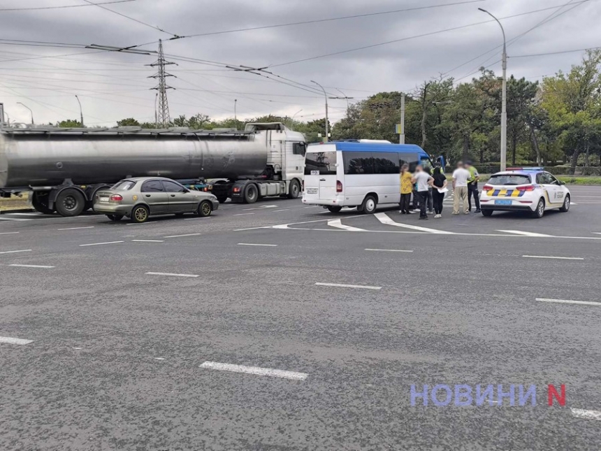У четвер, 5 вересня, на Херсонському кільці у Миколаєві зіткнулися DAEWOO Lanos та мікроавтобус Mercedes. Про це повідомляє кореспондент «Новин-N» із
