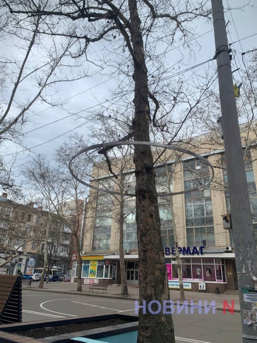 У Миколаєві на вулиці Соборній над клумбою, облаштування якої коштувало мільйон гривень, на дереві все ще прикріплено металеве кільце, за яку