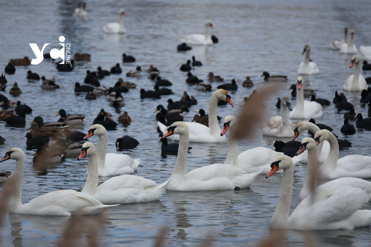 Лебеді та сотні качок заполонили поромну переправу в Чорноморську