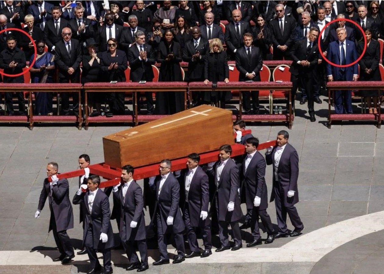 Фото: telegraph.co.uk Зеленського з дружиною Оленою посадили у першому ряду Розсадження високопоставлених гостей під час похорону понтифіка