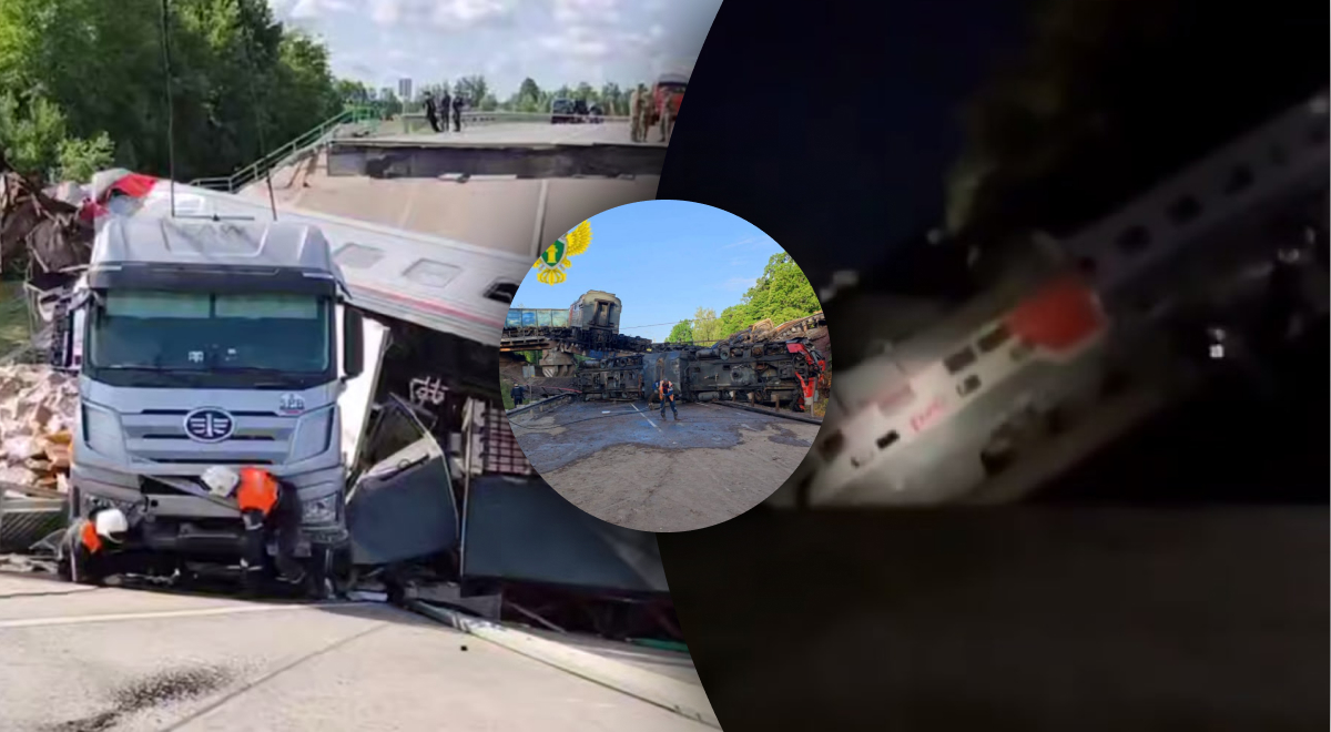 В Росії масово падають залізничні мости разом з потягами / Колаж Главред, фото: скріншоти із відео, Московська транспортна прокуратура У ніч на 1