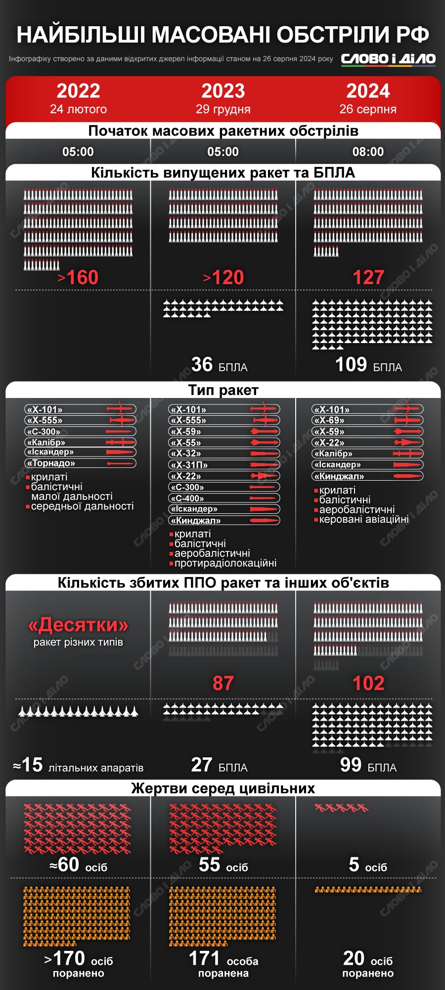 Три найбільші масовані повітряні атаки на Україну: порівняння — інфографіка