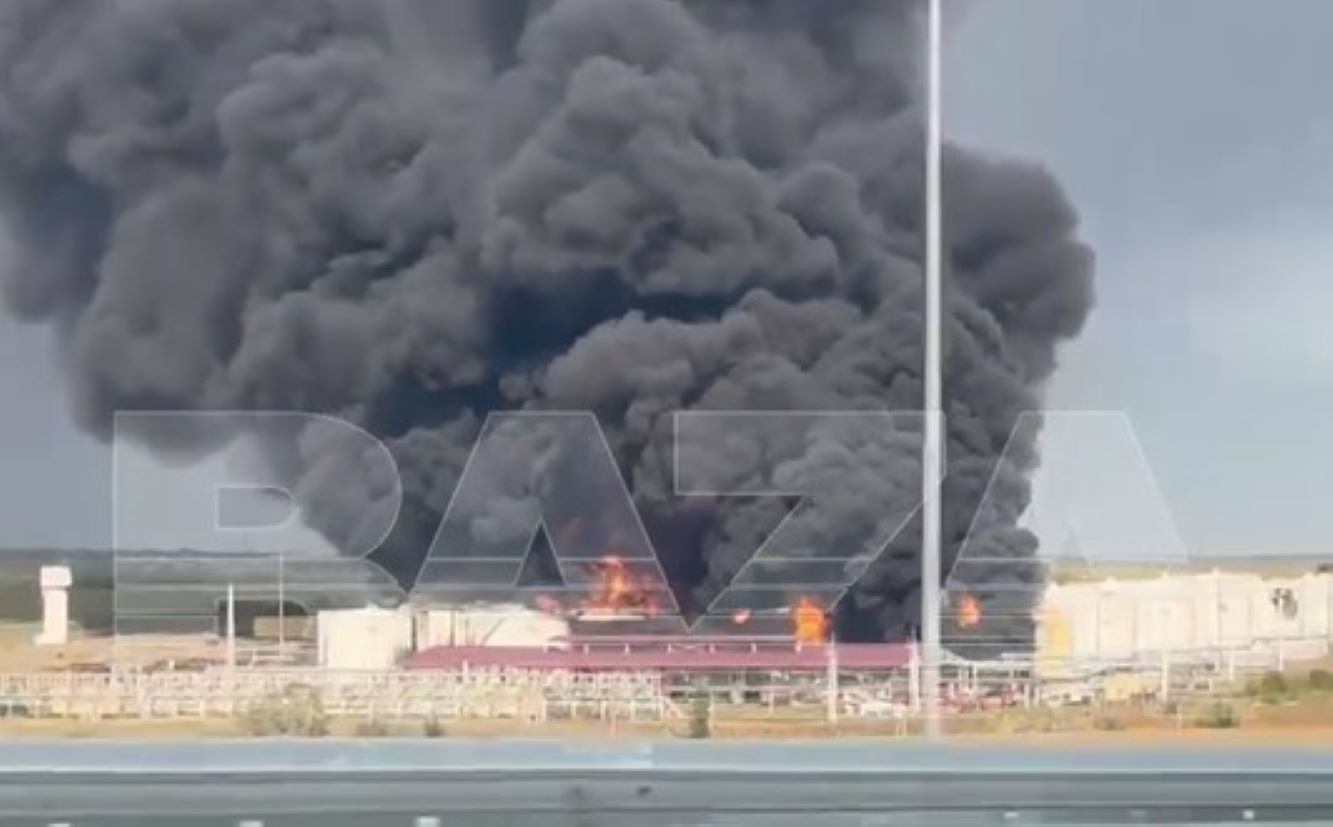 У Ростовській області на нафтобазі "Атлас" триває масштабна пожежа, яка виникла внаслідок атаки безпилотників. Відео опублікував телеграм-канал Baza.