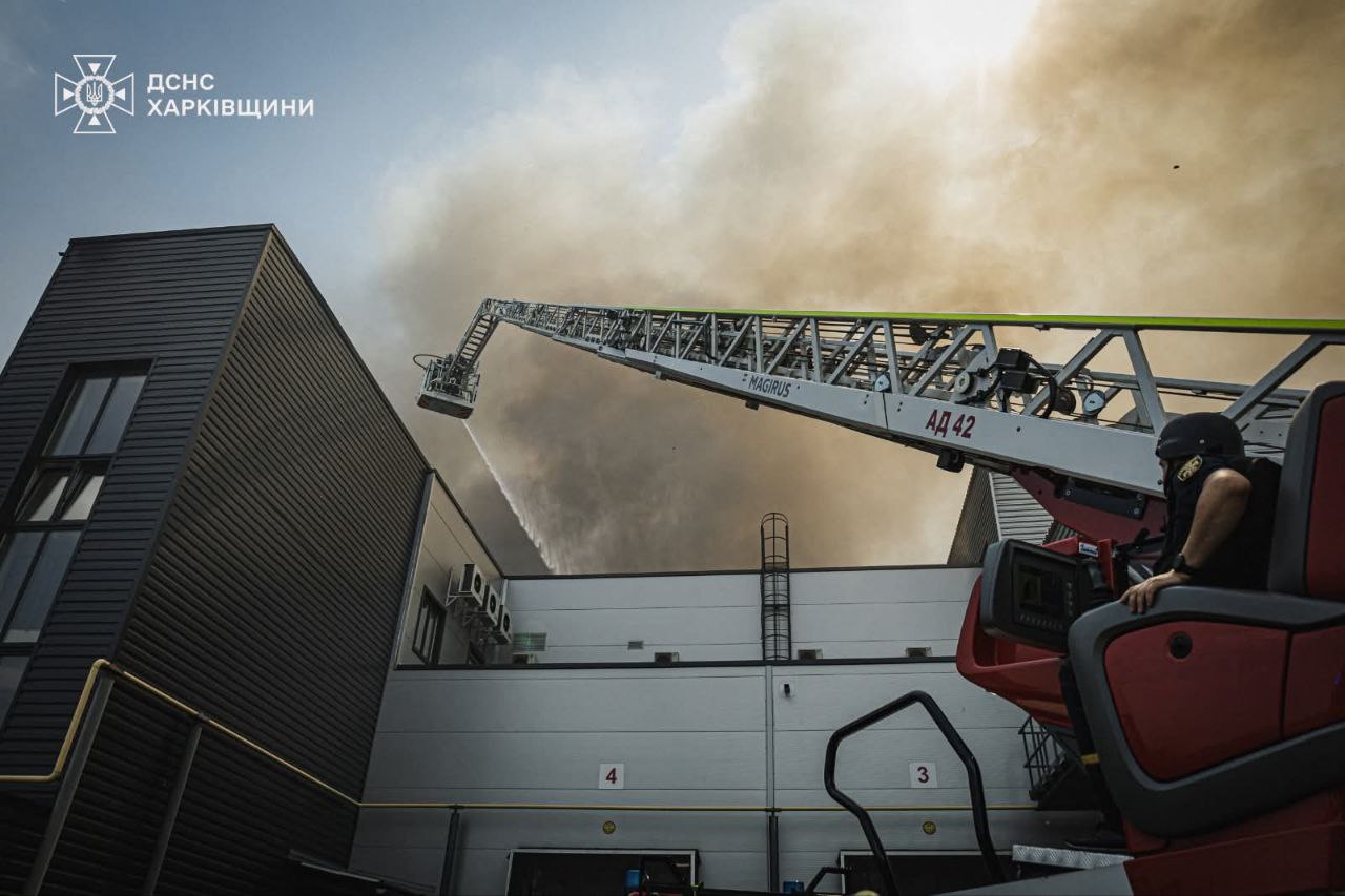 Рятувальники вже добу гасять пожежу на складі під Харковом