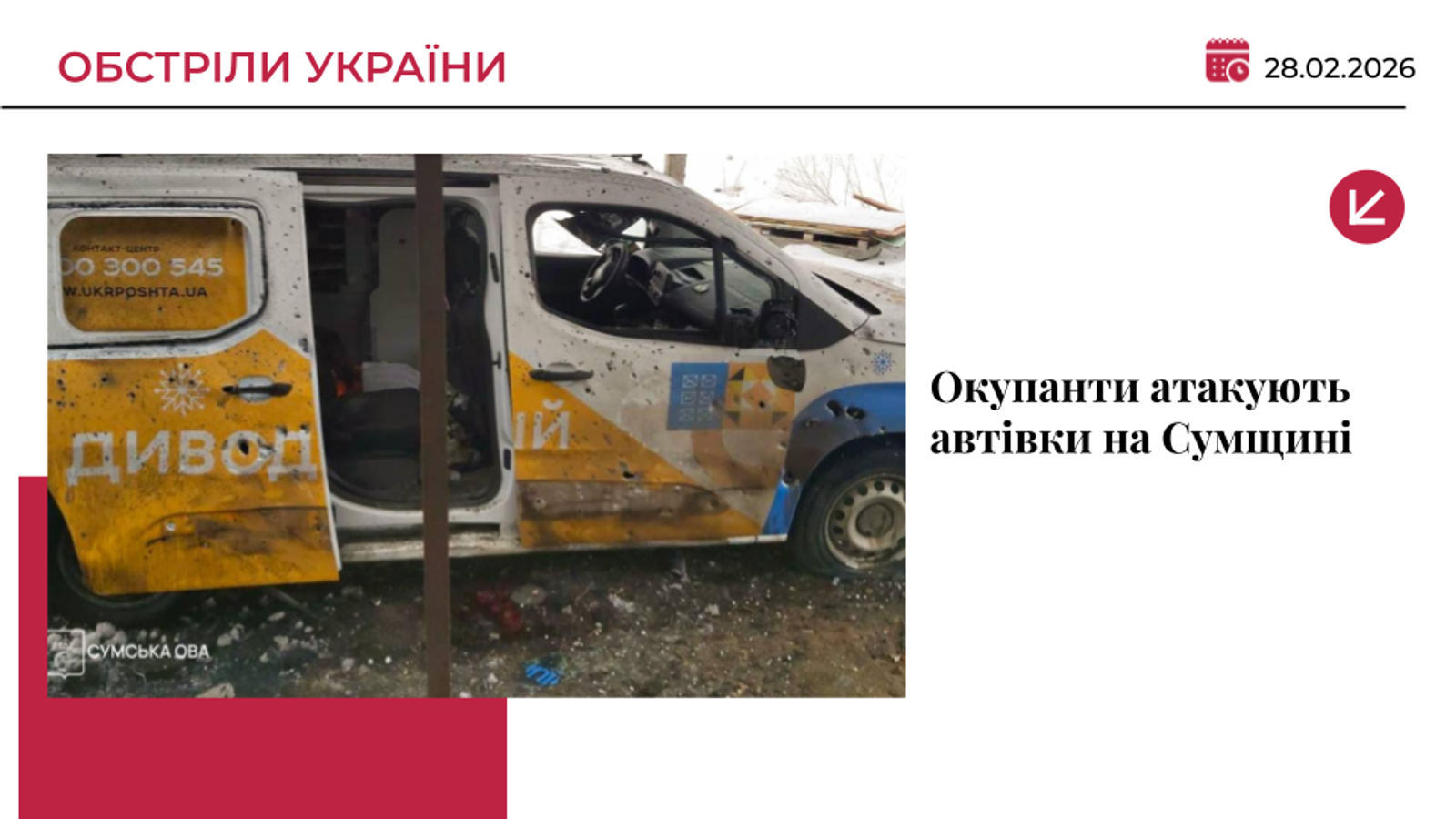 Окупанти атакували авто «Укрпошти» на Сумщині