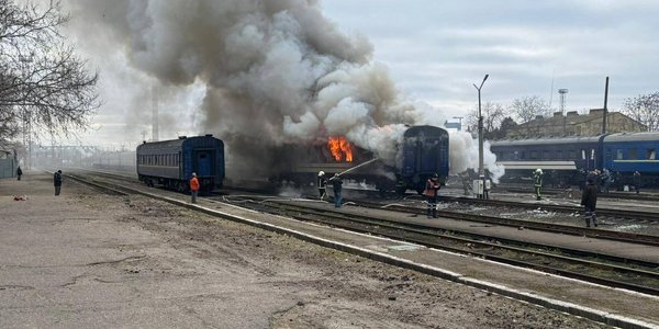 Війська країни-агресора Росії вранці у середу, 4 березня, вдарили дроном по порожньому потягу у Миколаєві, постраждав співробітник Укрзалізниці, пише